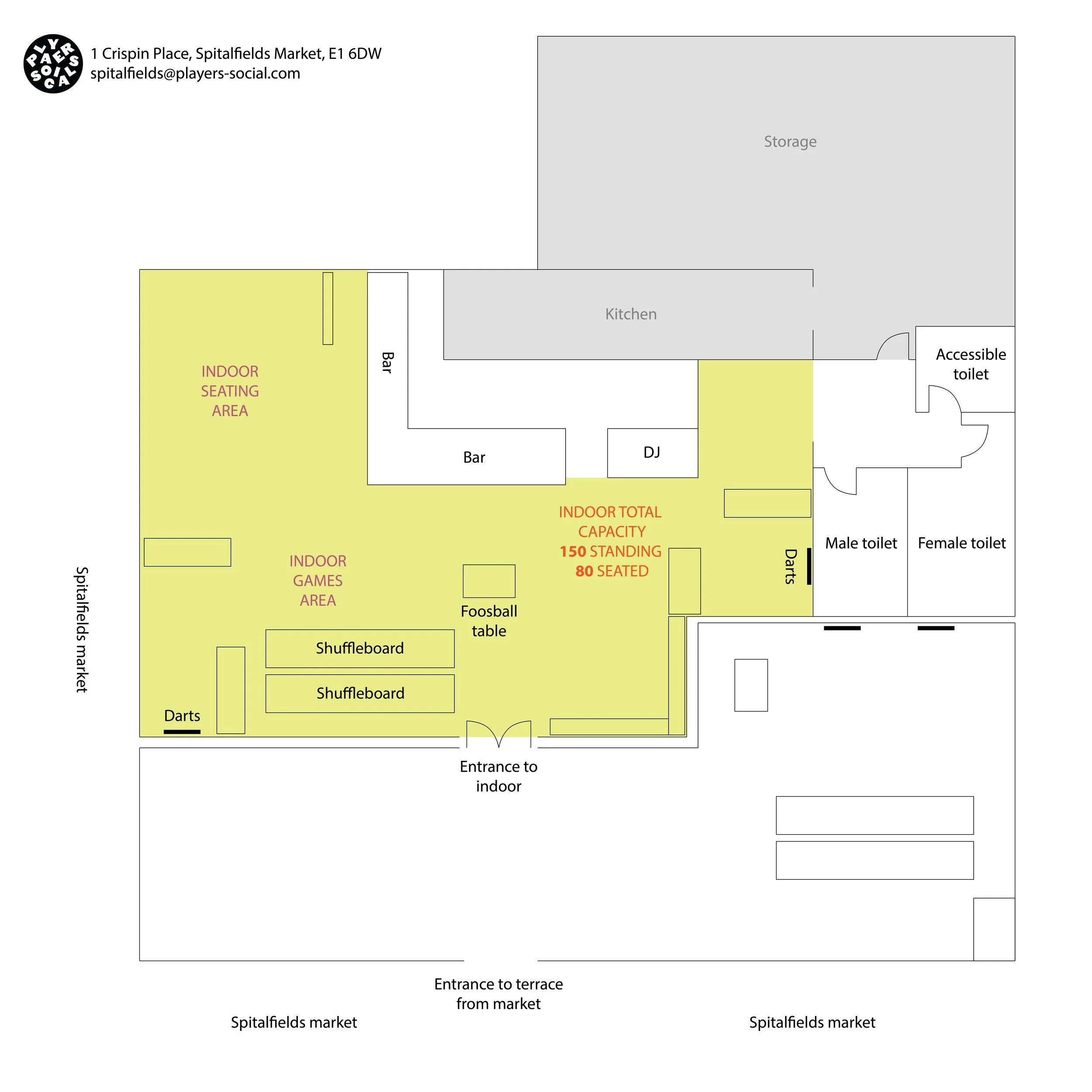 What to expect: standing capacity up to 300, seated capacity up to 160, Interactive Darts oches, Shuffleboard Tables, Table Football, flexible seating and standing areas, competitive hookey, indoor venue and covered terrace.